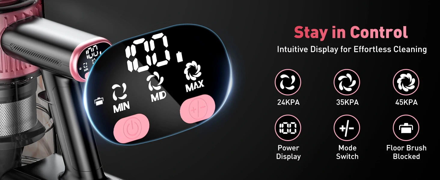 *Smart LED Display & User-Friendly Controls: Stay in control with the easy-to-read LED screen, which shows real-time status updates. The intuitive physical buttons and suction adjustments prevent accidental changes, making your cleaning routine smoother and more efficient.