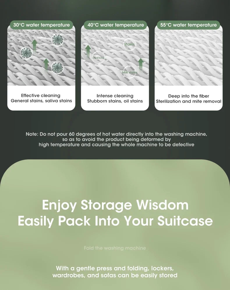 3. Powerful Function: The positive and negative pulsator simulates hand washing, 360° gentle washing does not damage the clothes, strong decontamination and gentle rotation of the clothes, clean and do not hurt the clothes, much cleaner than hand washing.