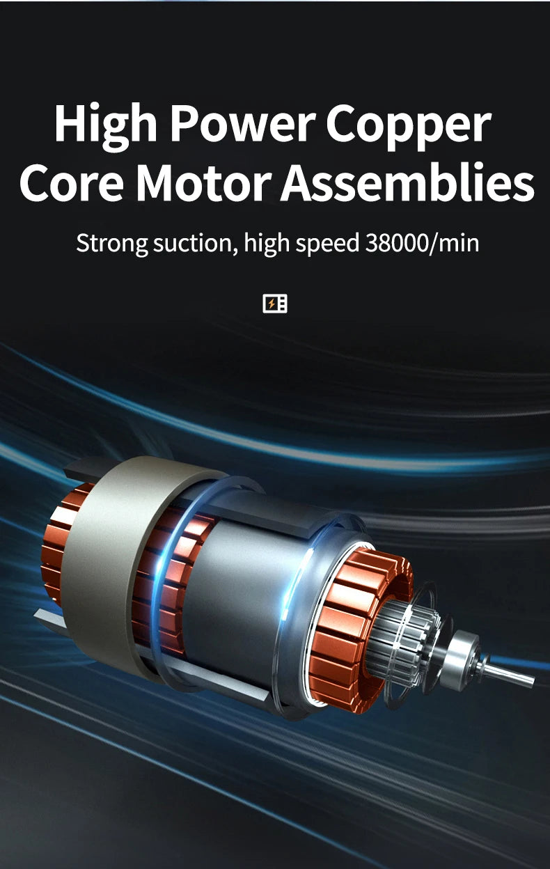 5.Compact and Portable Design: Our wireless car vacuum cleaner is designed to be compact and portable, allowing you to take it anywhere you need it. Whether you're cleaning your home, office, or car, our lightweight vacuum cleaner is easy to carry and maneuver. Enjoy the convenience of on-the-go cleaning without sacrificing power or performance. Its sleek and stylish design makes it a practical and stylish addition to your cleaning arsenal.