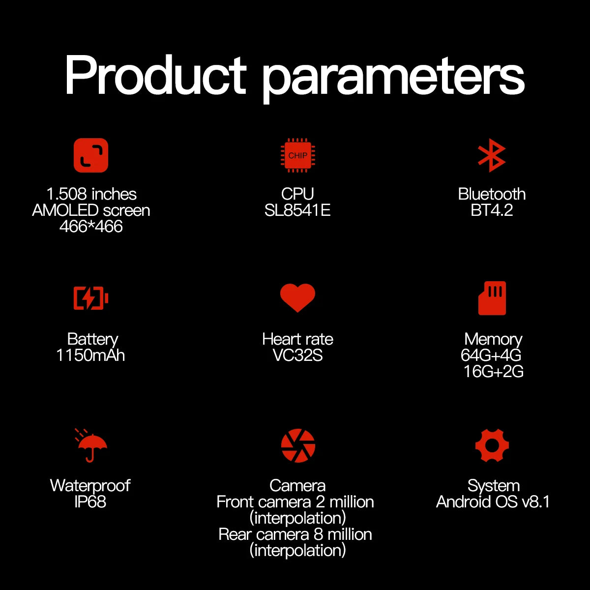 function: Alarm Clock,Answer Call,Calculators,Call Reminder,Playing the Quran,Push Message,Sleep Tracker,Video Call,Voice Call