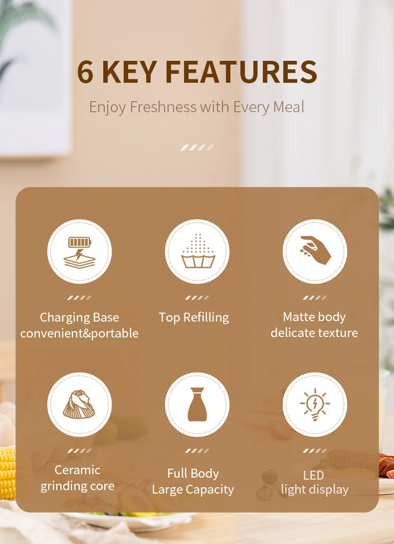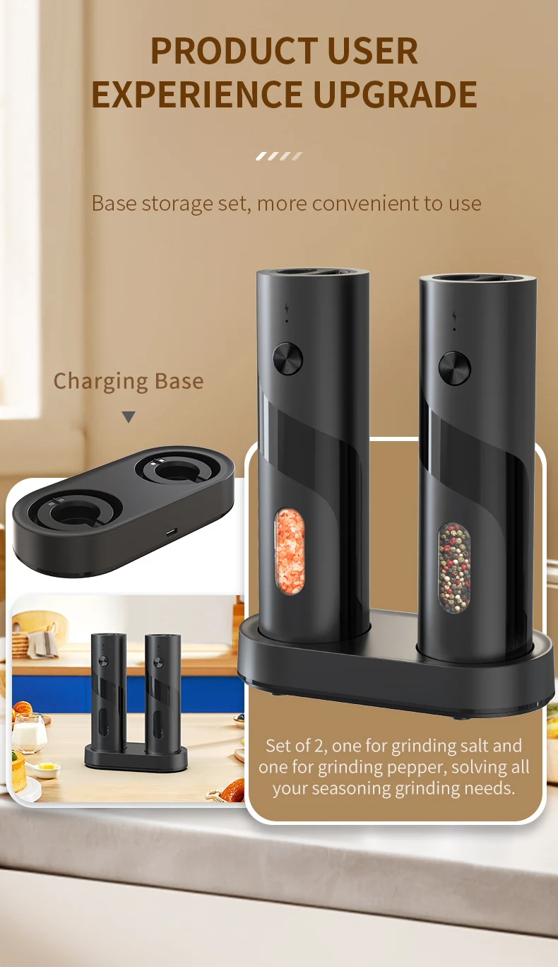 2Pcs/Set USB Rechargeable Automatic Pepper Grinder Salt And Pepper Mill Adjustable Coarseness Spice Grinder with LED for Kitchen