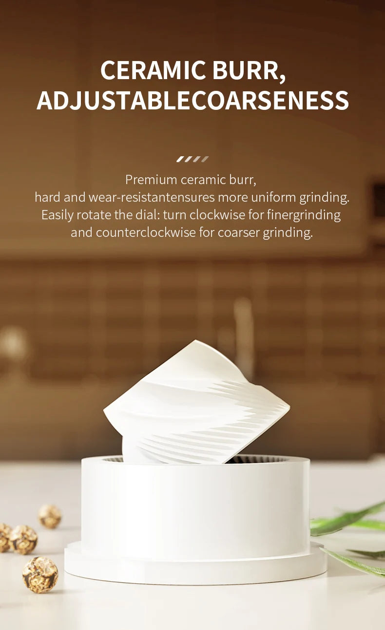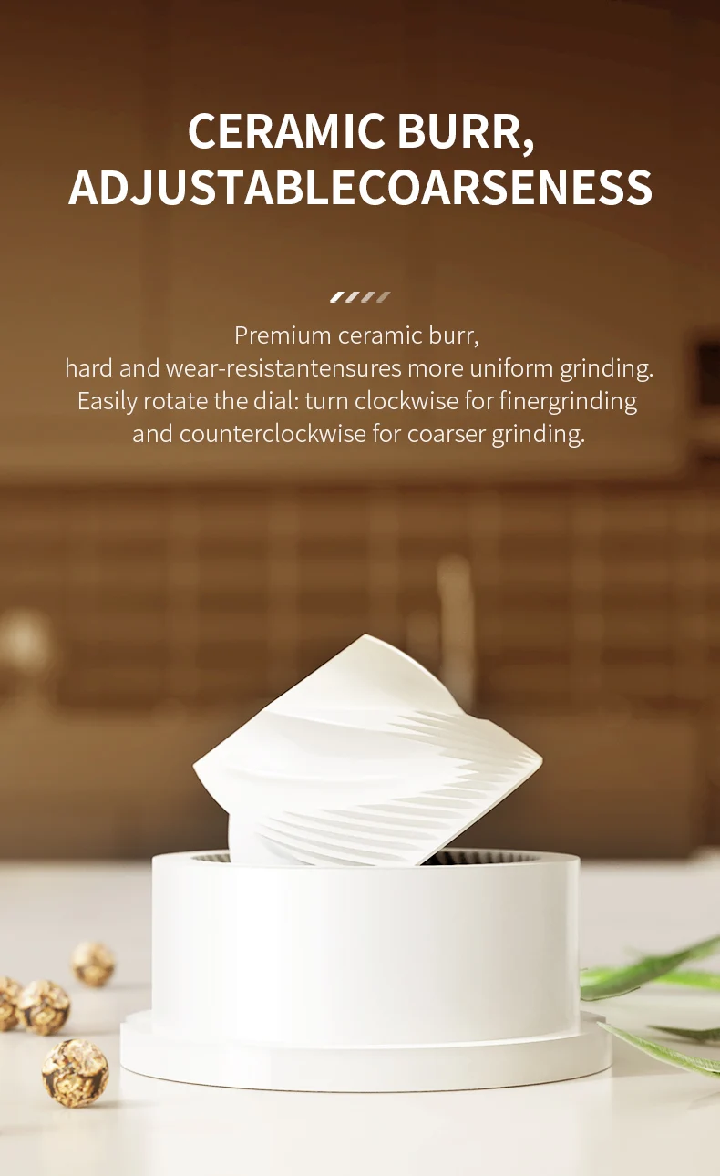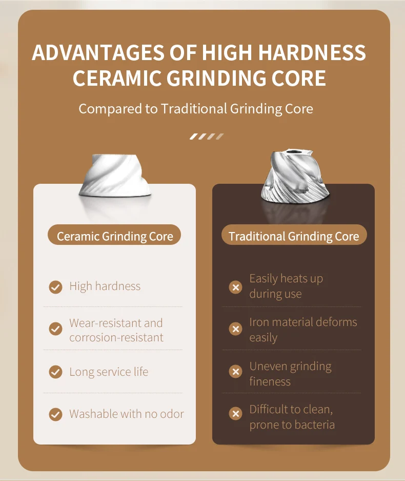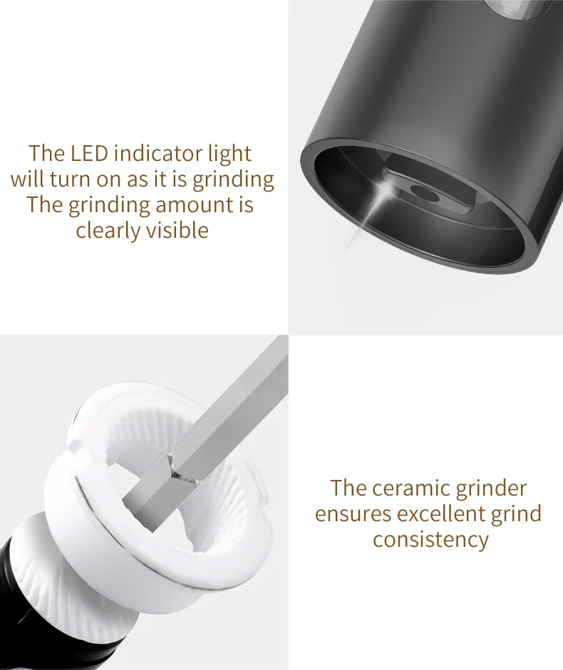 The LED indicator lights up immediately after grinding, and the grinding process is clearly visible