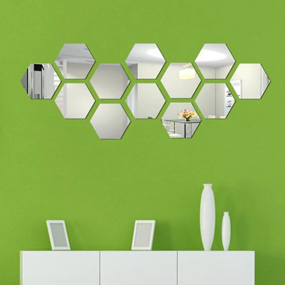 6/12PCS Hexagon Mirror Wall Stickers Acrylic Self Adhesive Mosaic Tile Decals for Room Decoration DIY Art Ornaments Gift