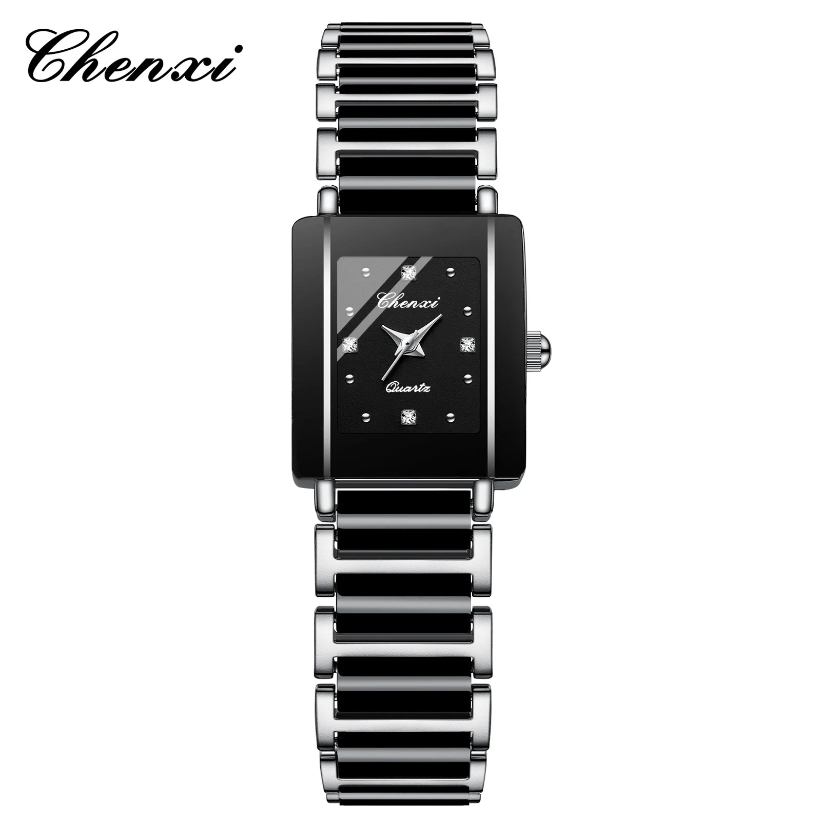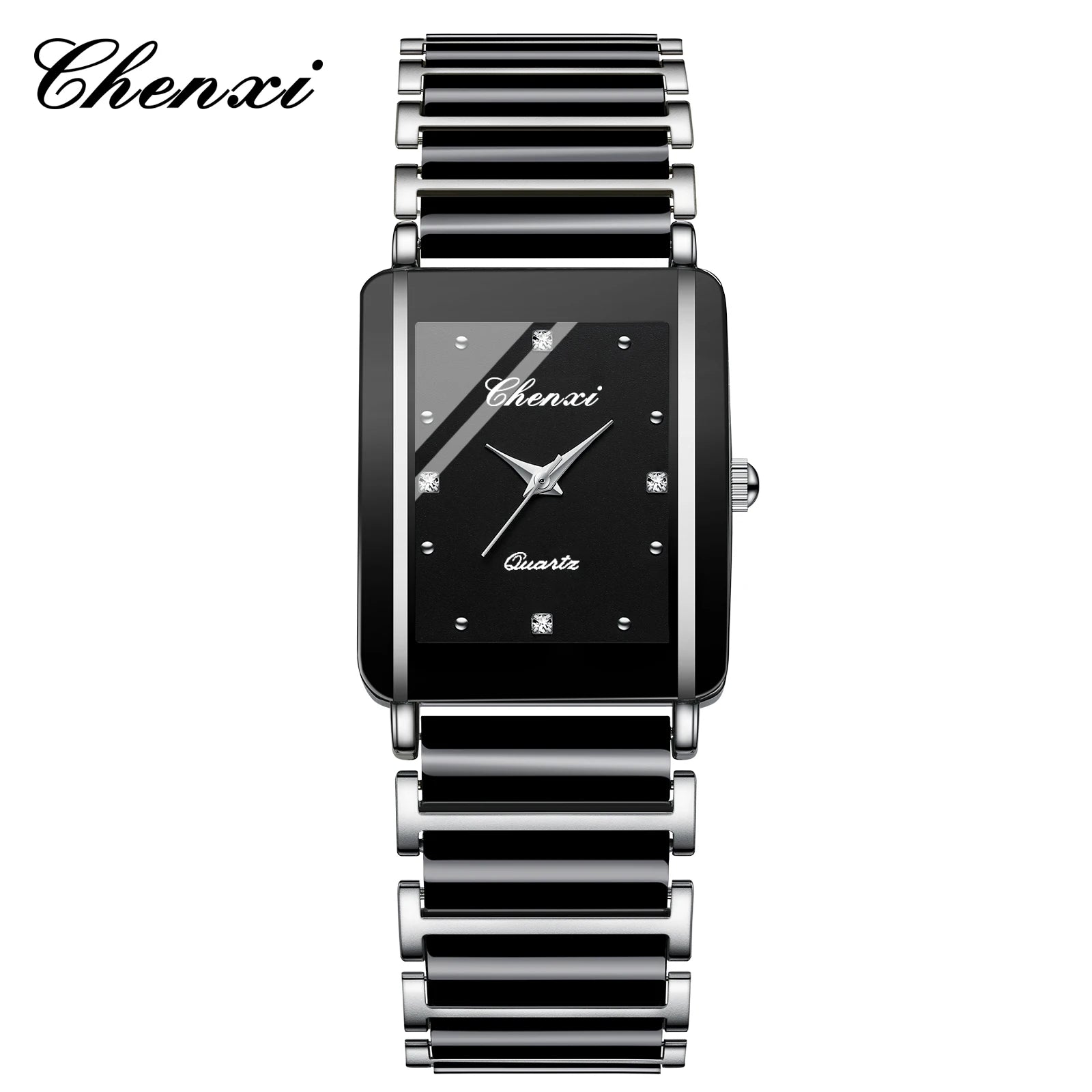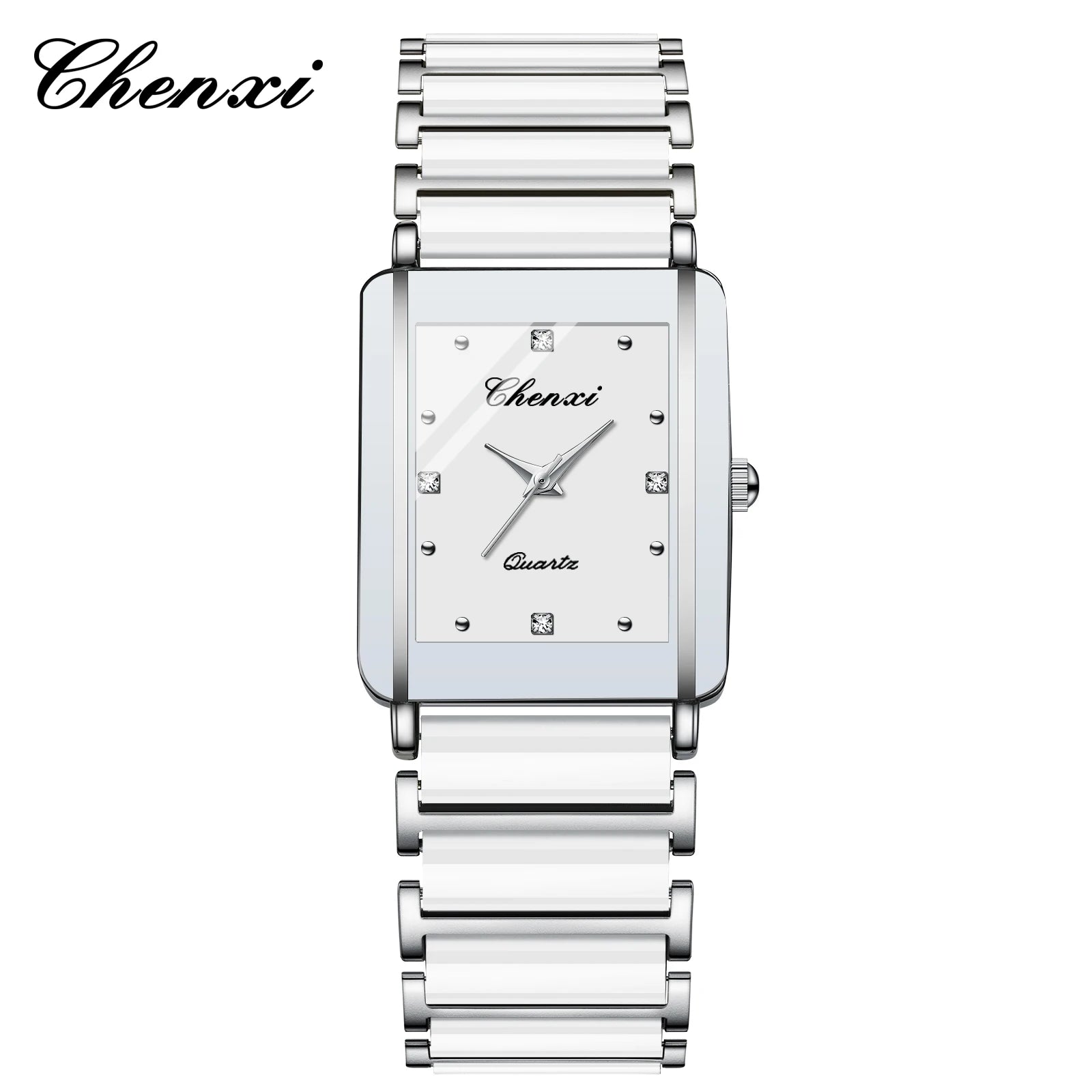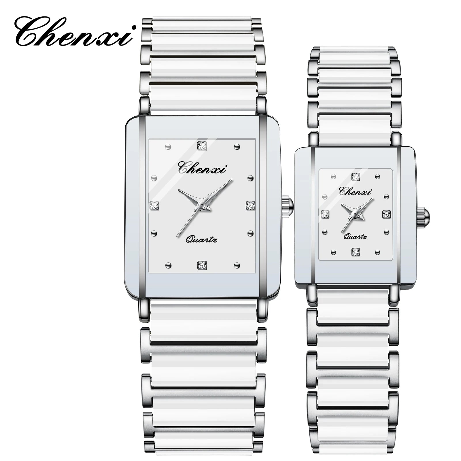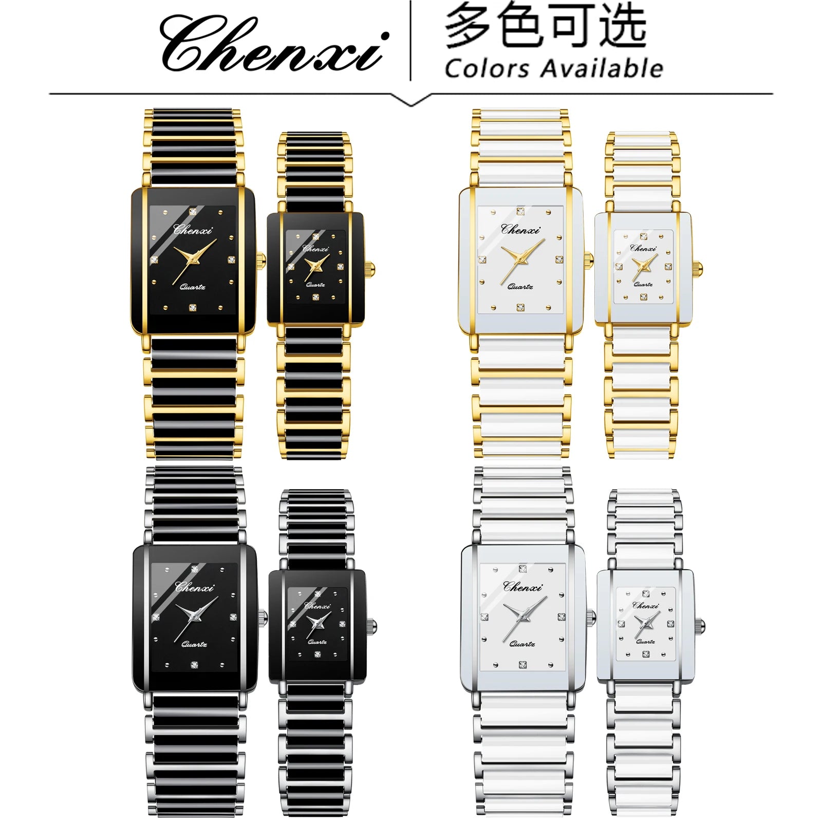 CHENXI 104A Fashion couple watches Rectangle Quartz Watch for Women Men Lovers Simulated-ceramics relojes para damas reloj mujer