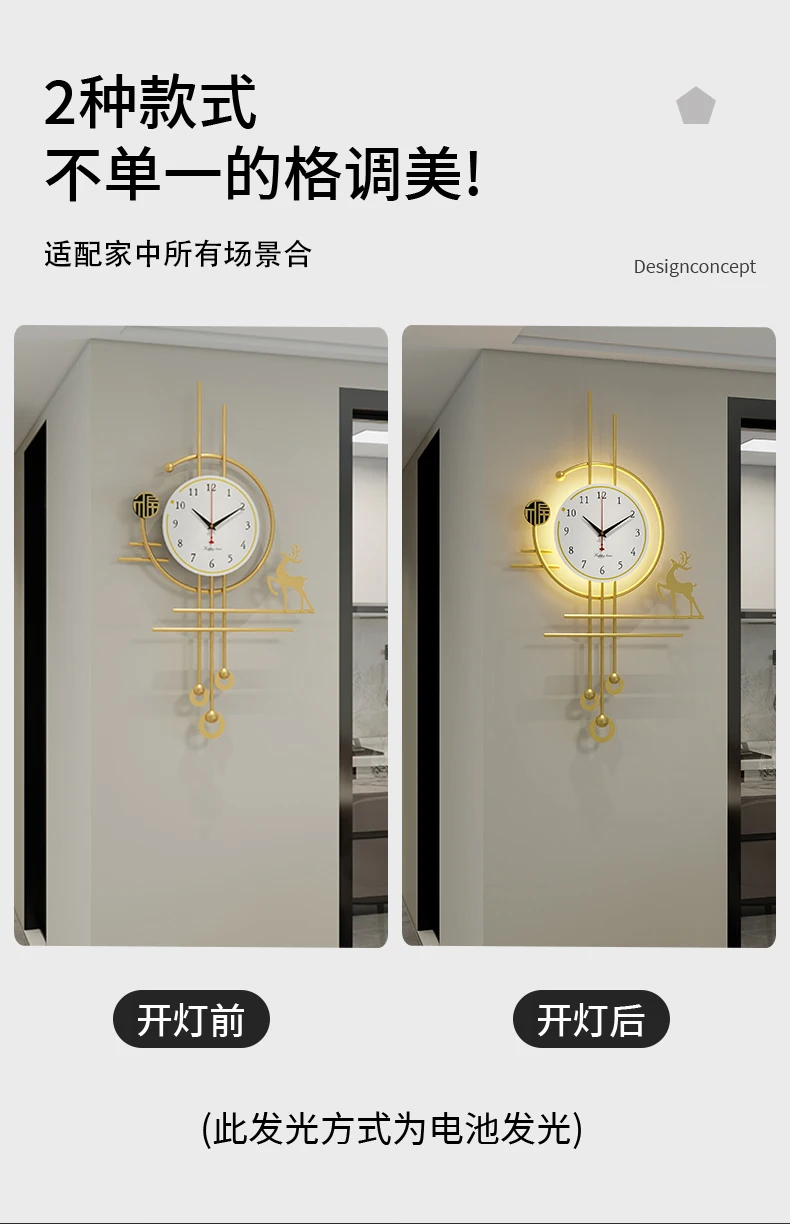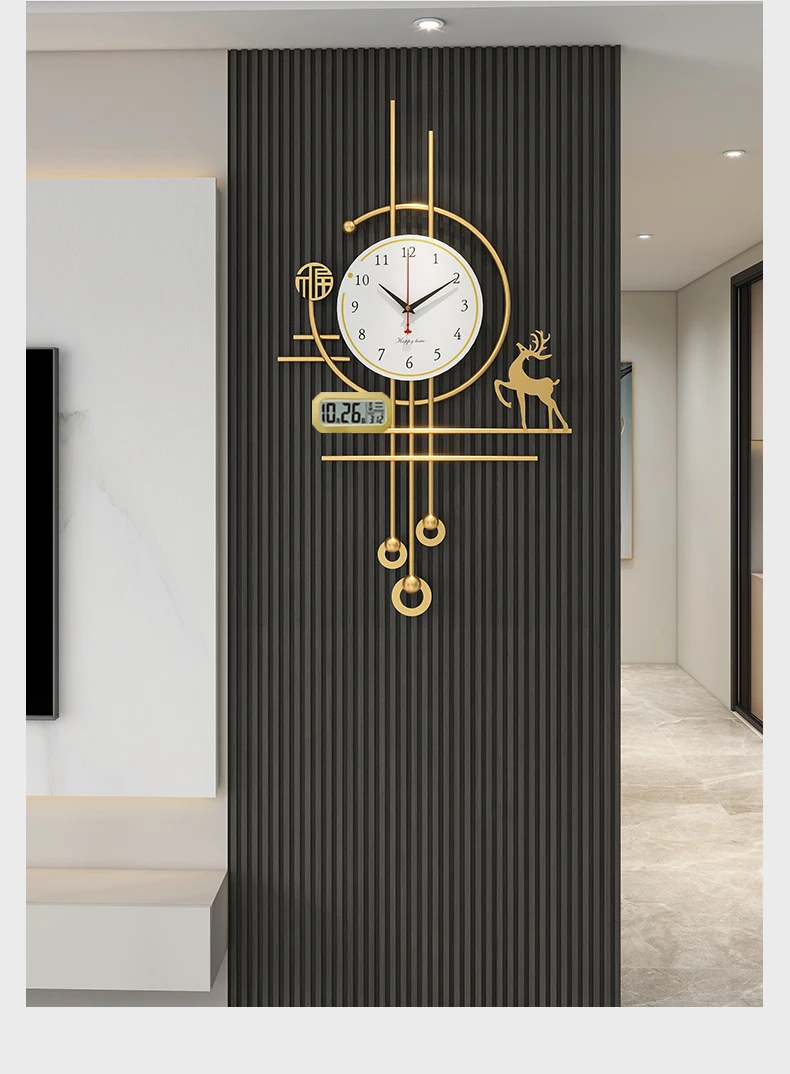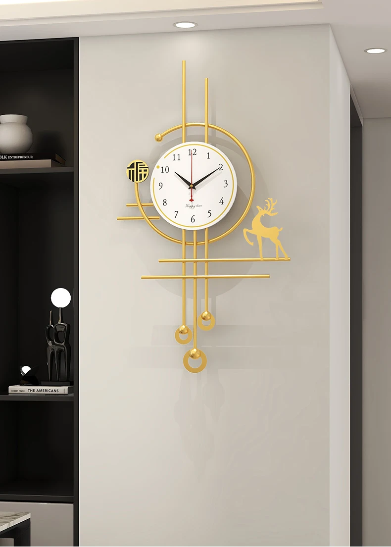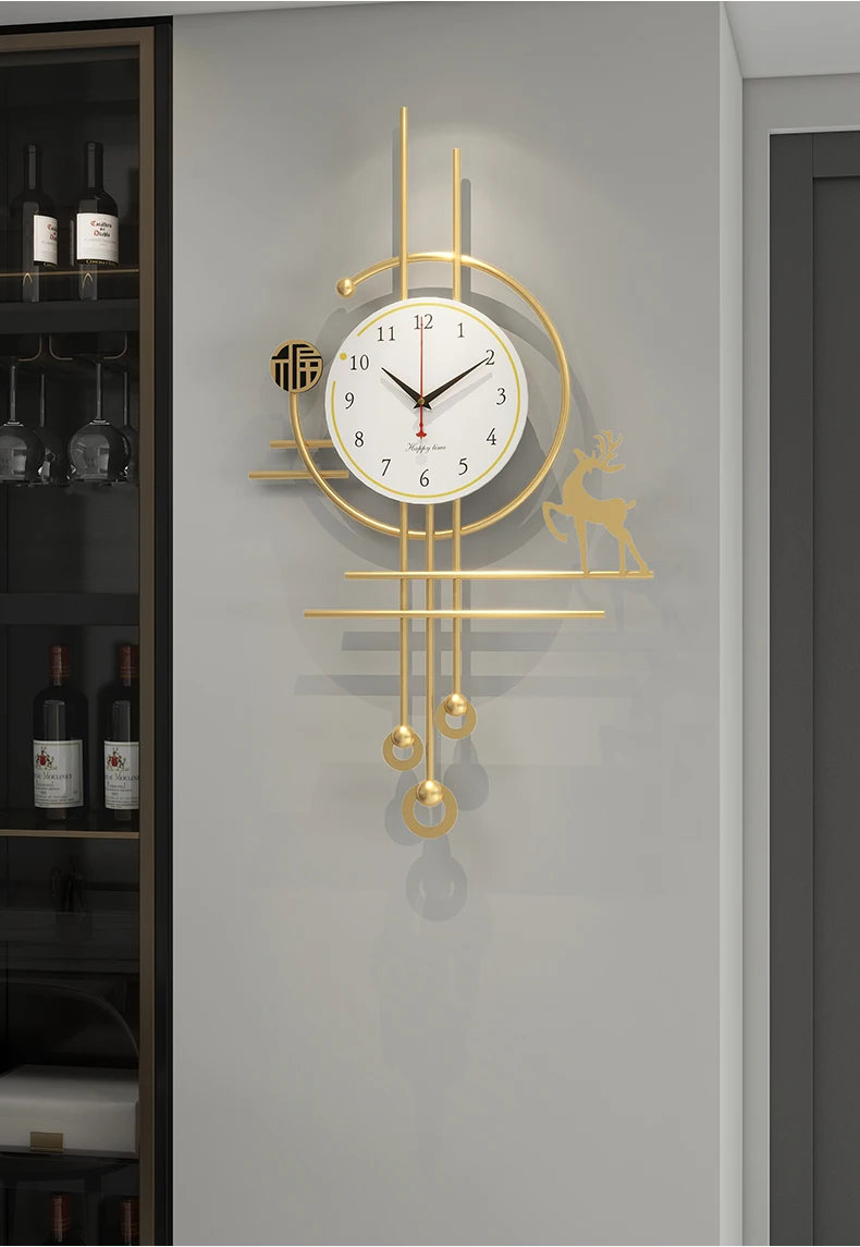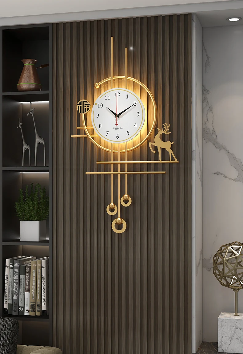 European Luxury Pendulum Wall Clock | Classic Luminous Hanging Clock in Gold for Elegant Home Decoration