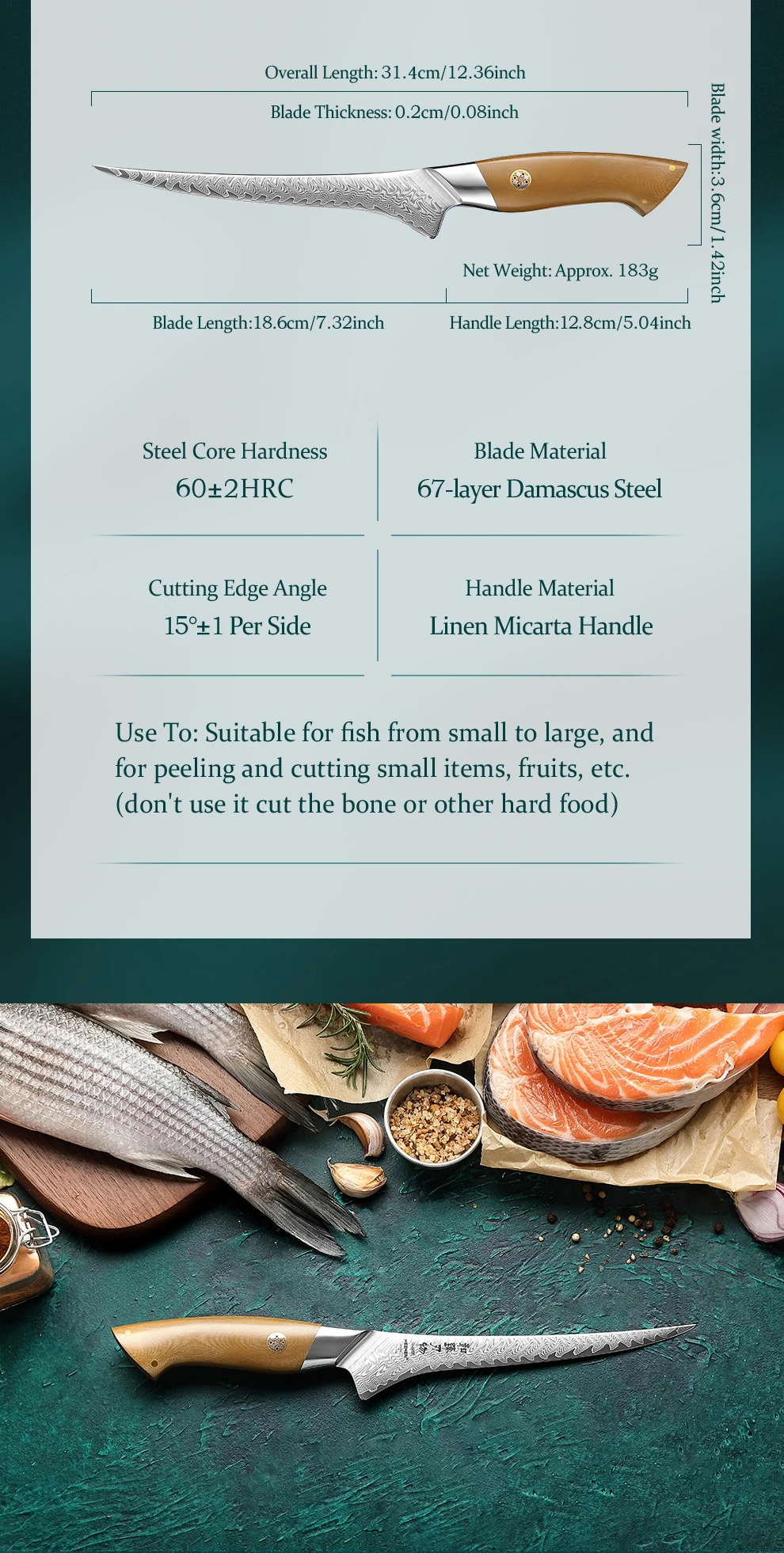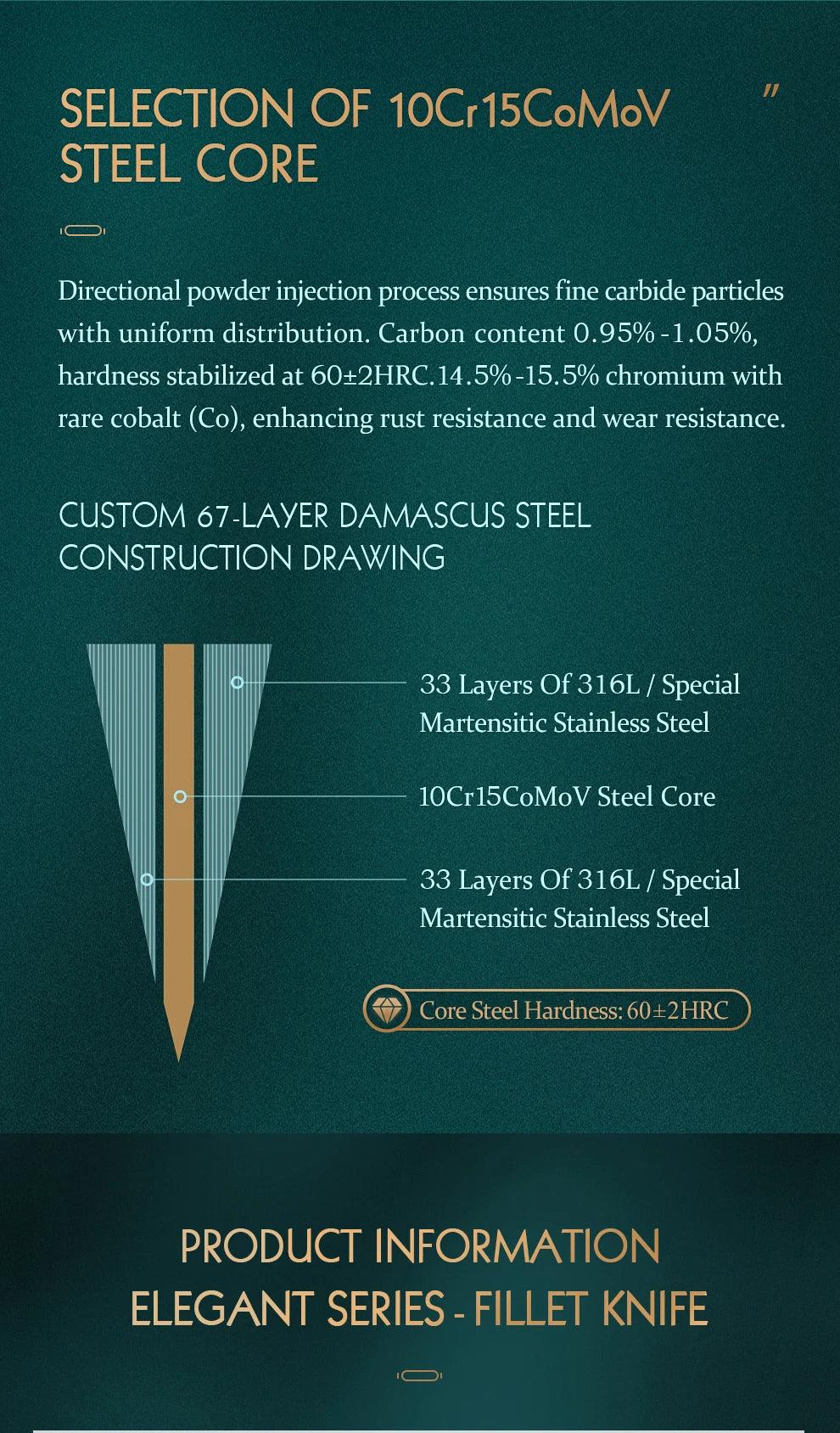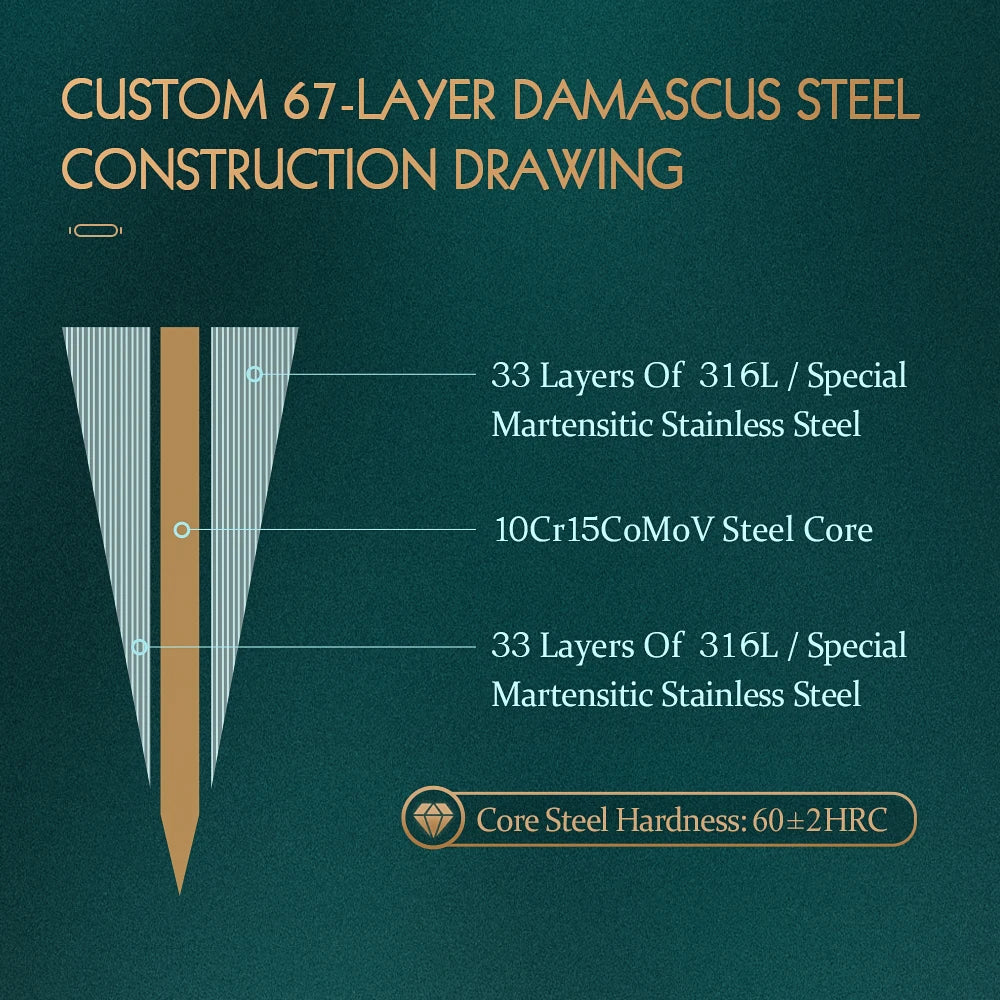 Blade Material: 67-layer Damascus steel 10Cr15CoMoV Core