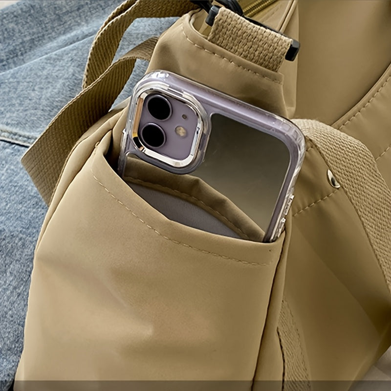 Large Capacity Nylon Crossbody Bag Casual Solid Color Messenger Shoulder Bag with Removable Strap