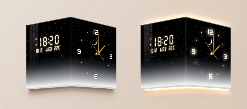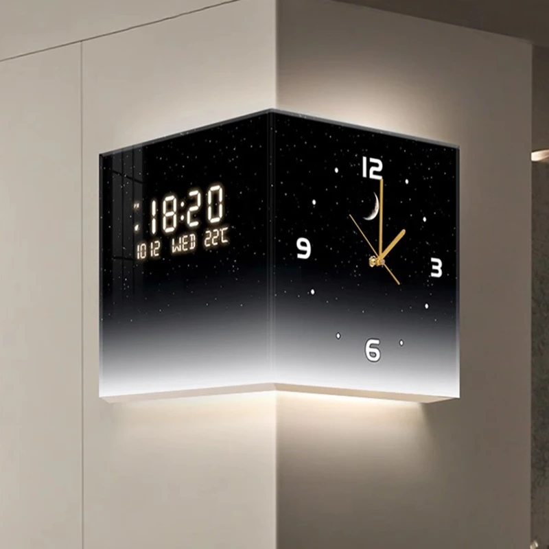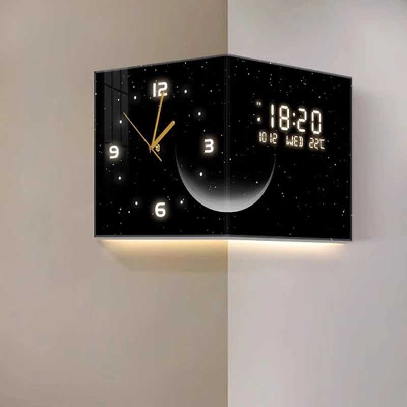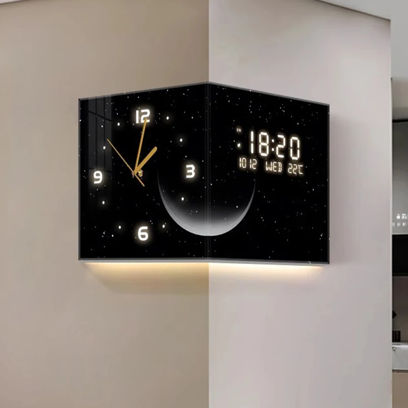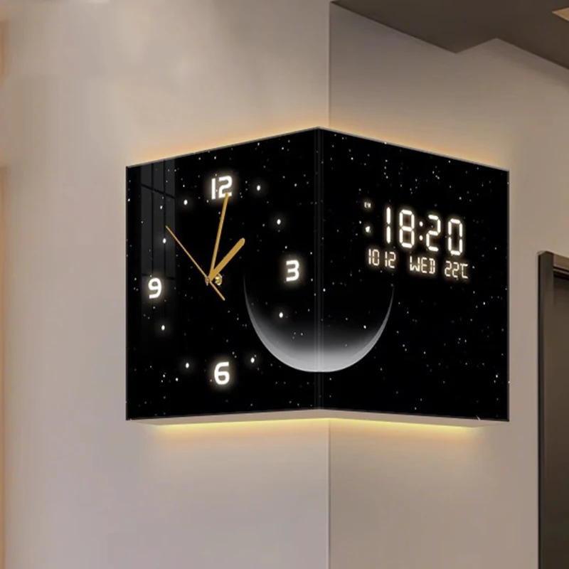 Modern Luxury Luminous Corner Wall Clock | Silent Digital Calendar Clock for Living Room & Bedroom Home Decor