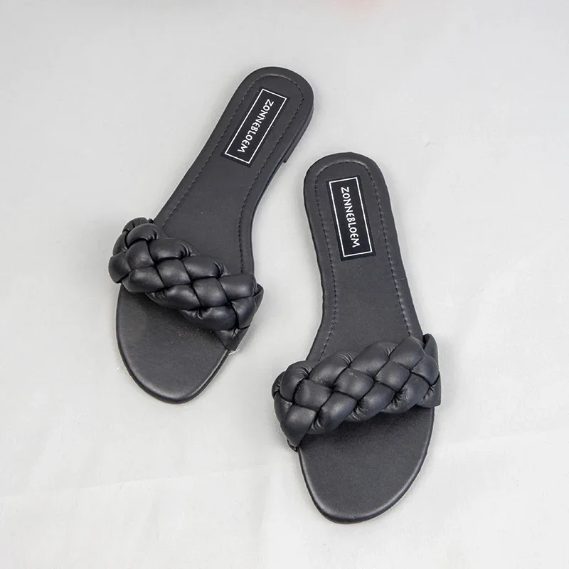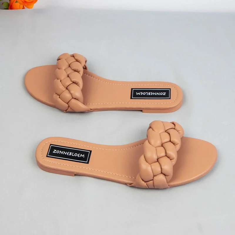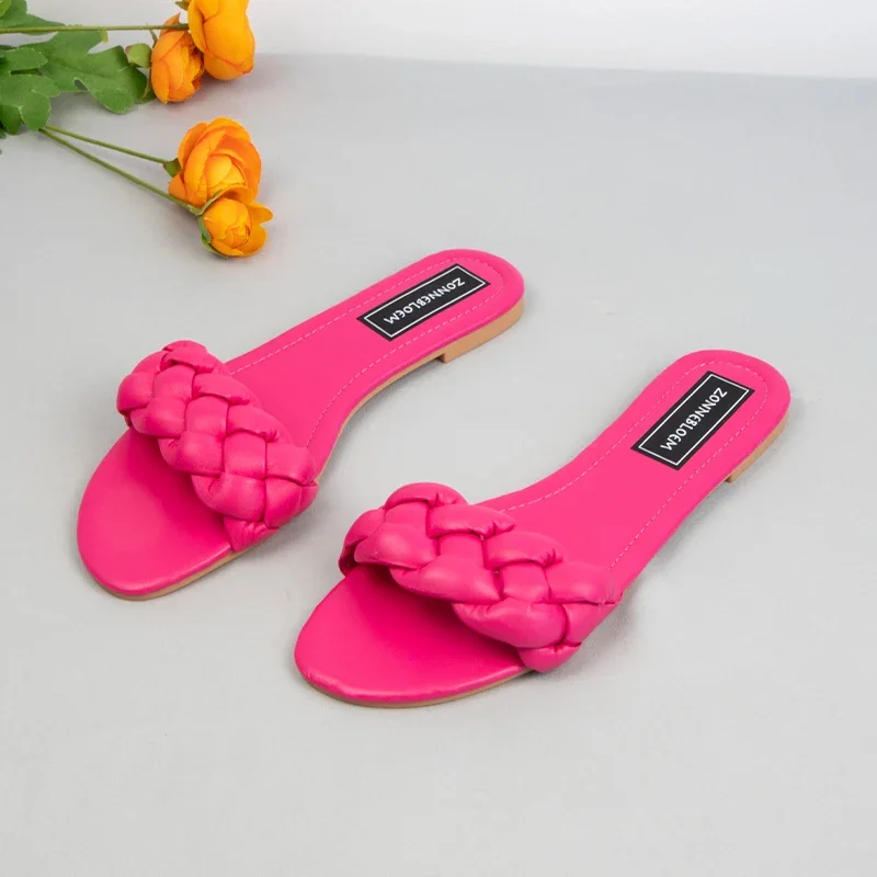 New 2025 Women Flat Outside Slippers Clearance Sale Trendy Weaving Leisure Ladies Beach Shoes Summer Soft Sole Unique Slides