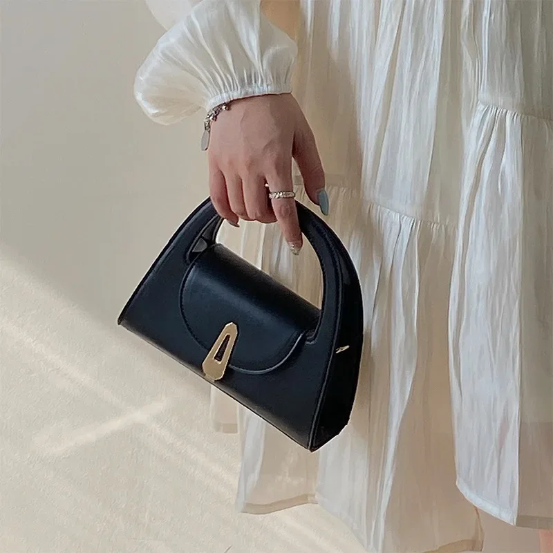 Niche high-end handbag women's new semi-round shoulder bag versatile commuter retro lock messenger bag tide
