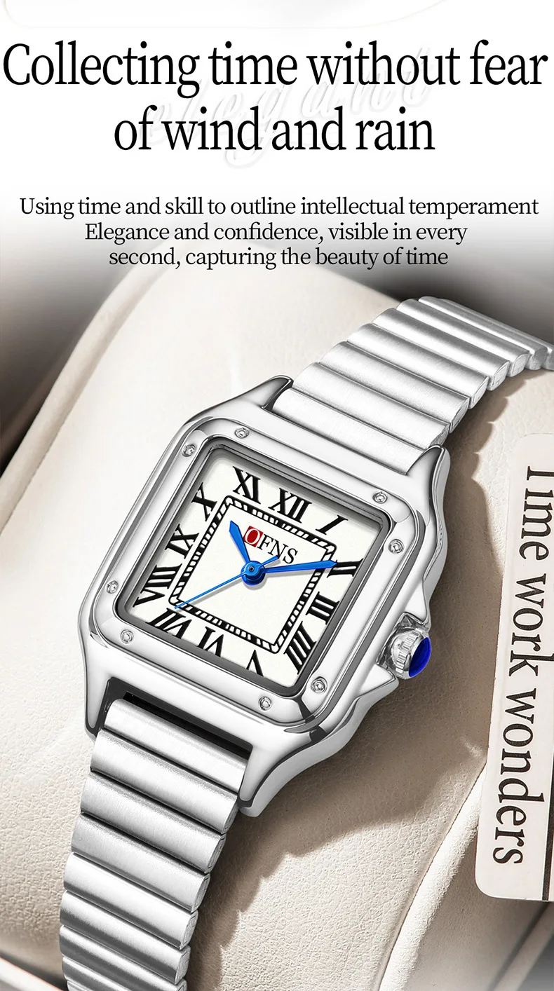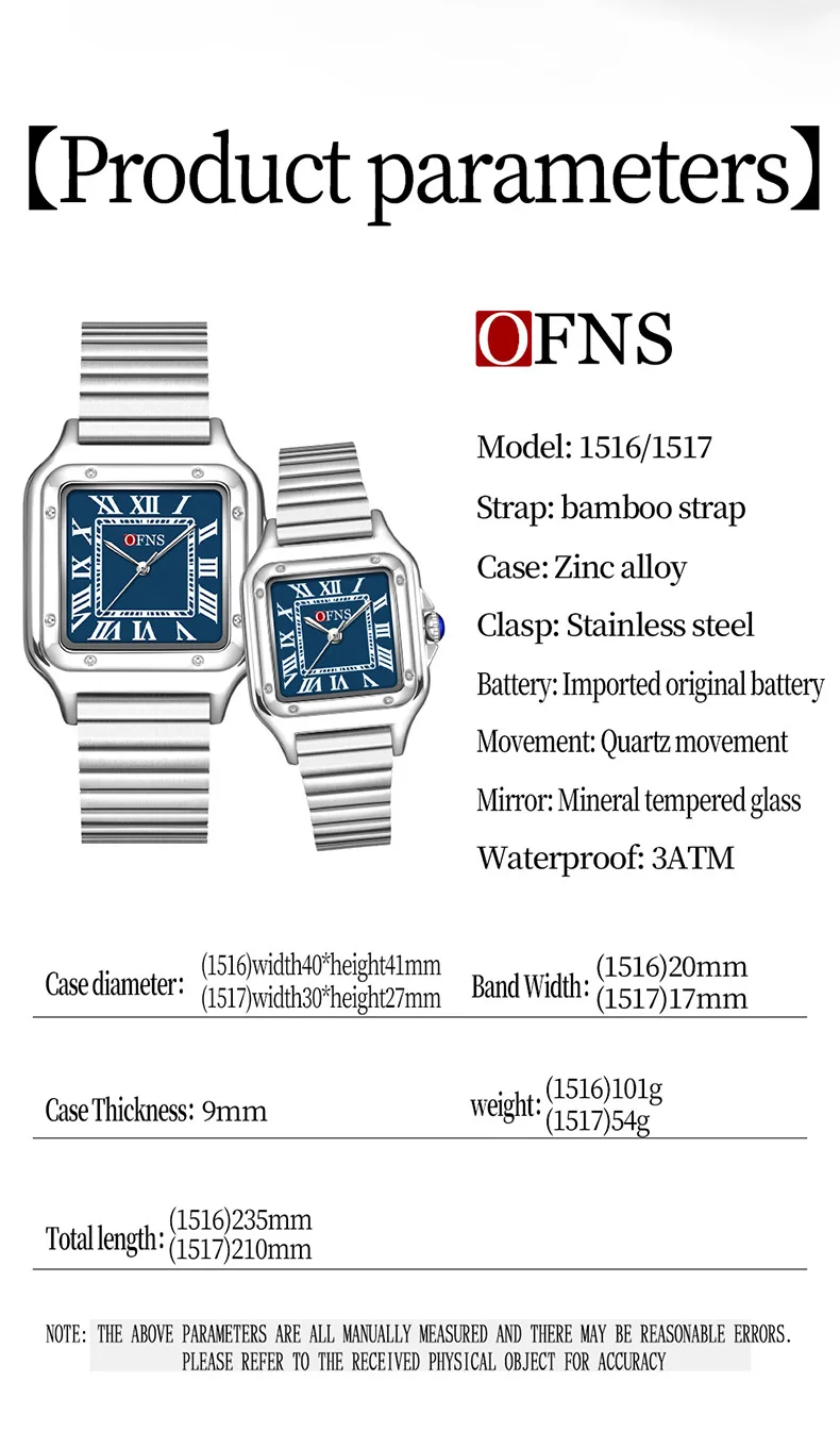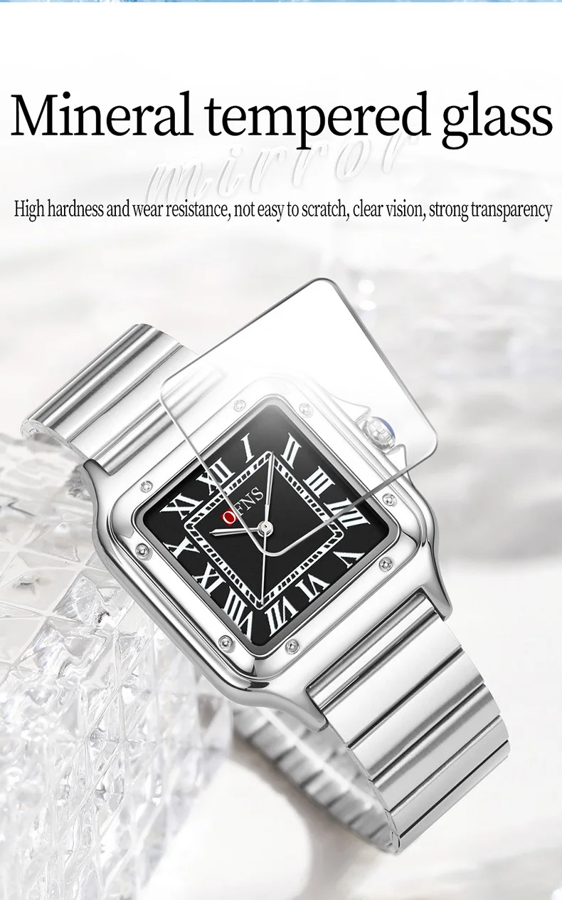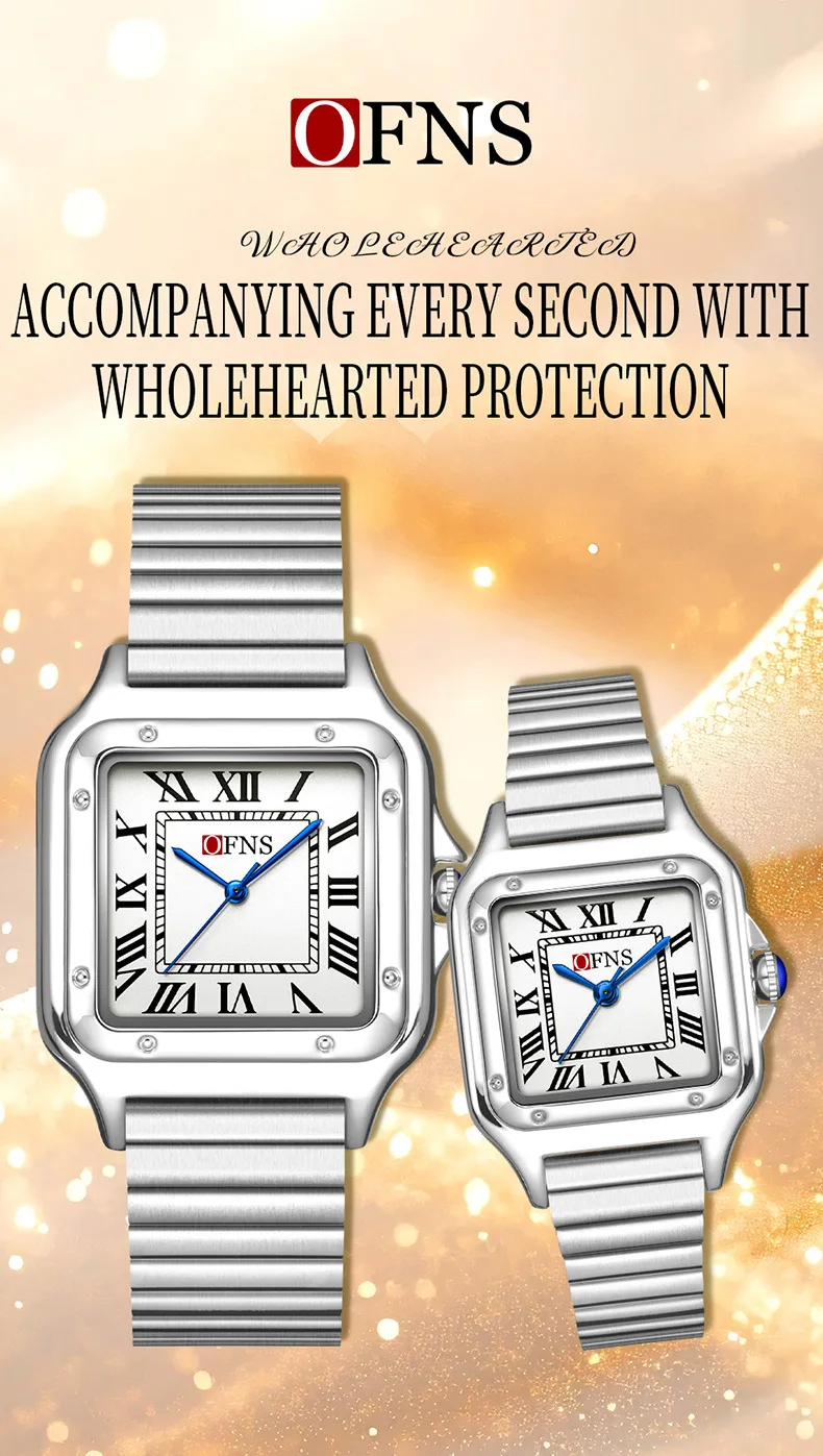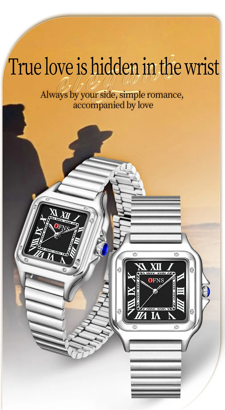 OFNS 2025 New 1516 Square Couple Quartz Watch 3ATM Waterproof Mineral Glass Roman Scale Simple Fashion Watch for Men and Women