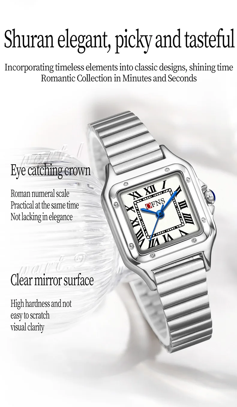 • styleClassic square outline fused with Roman scale, interpreting eternal romance in simplicity, fit Daily commuting, workplace business, dating and socializing And other occasions, highlighting intellectual temperament and elegant taste.