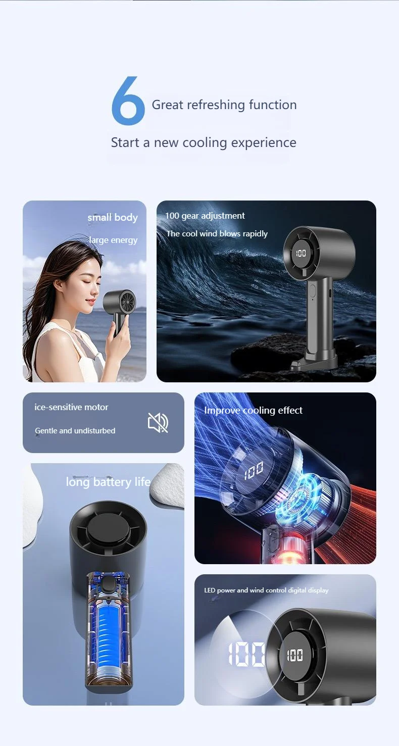 Portable Mini Handheld Fan with LED Display Semiconductor Refrigeration 100 Speeds USB Rechargeable Battery Outdoor Fan