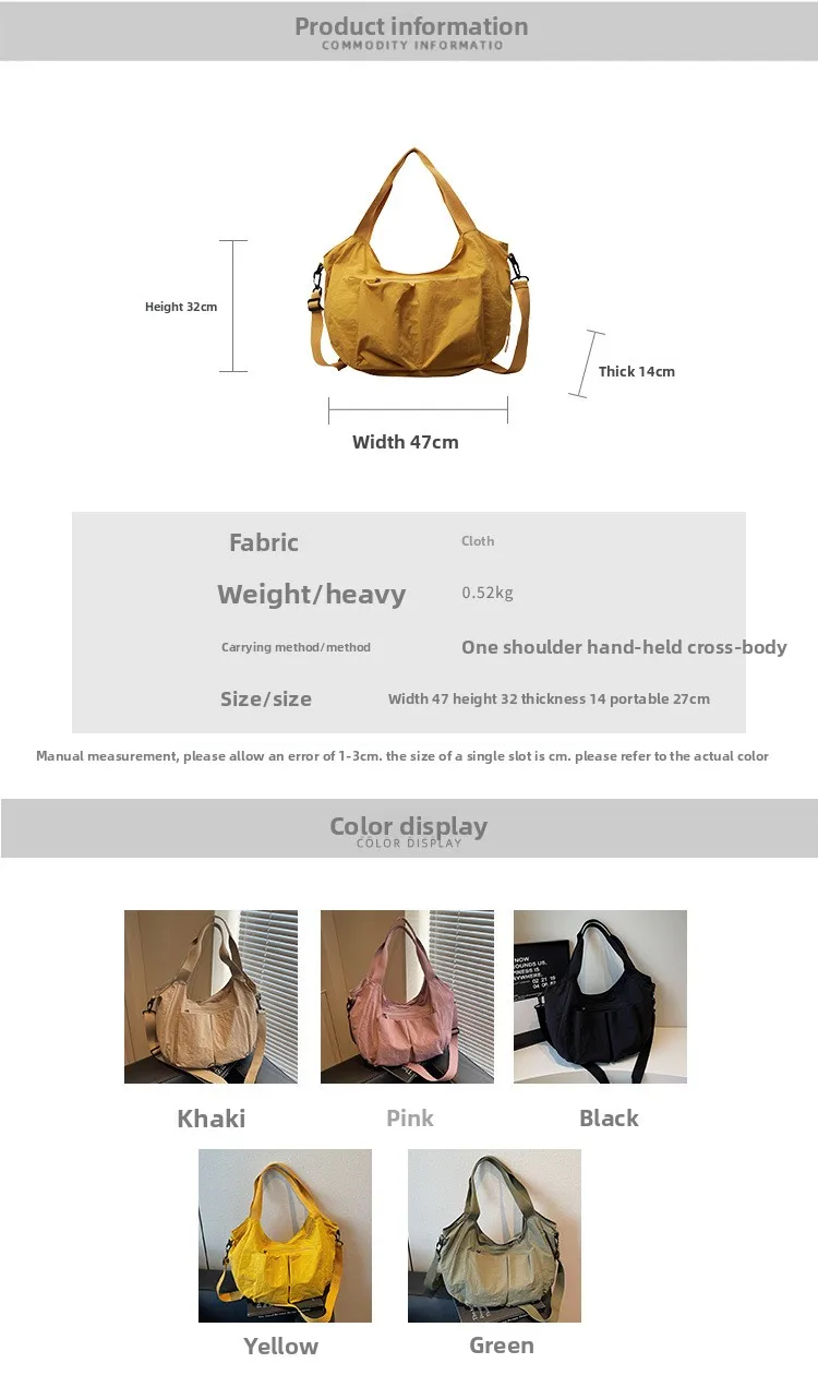 Summer New Large Capacity Crossbody Bag Nylon Fashionable Single Shoulder Handbag Women's Casual Tote Bag